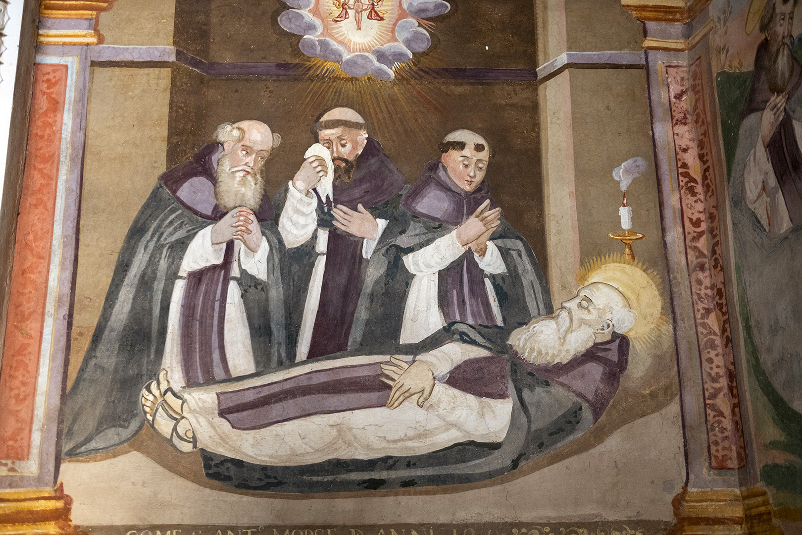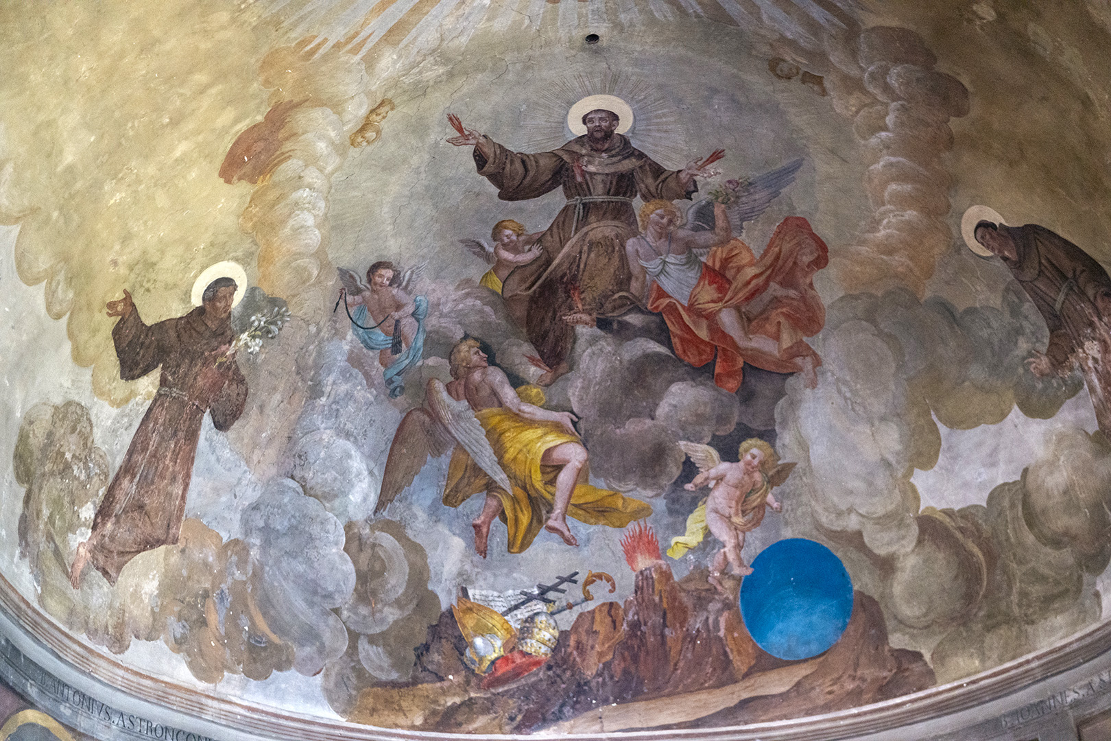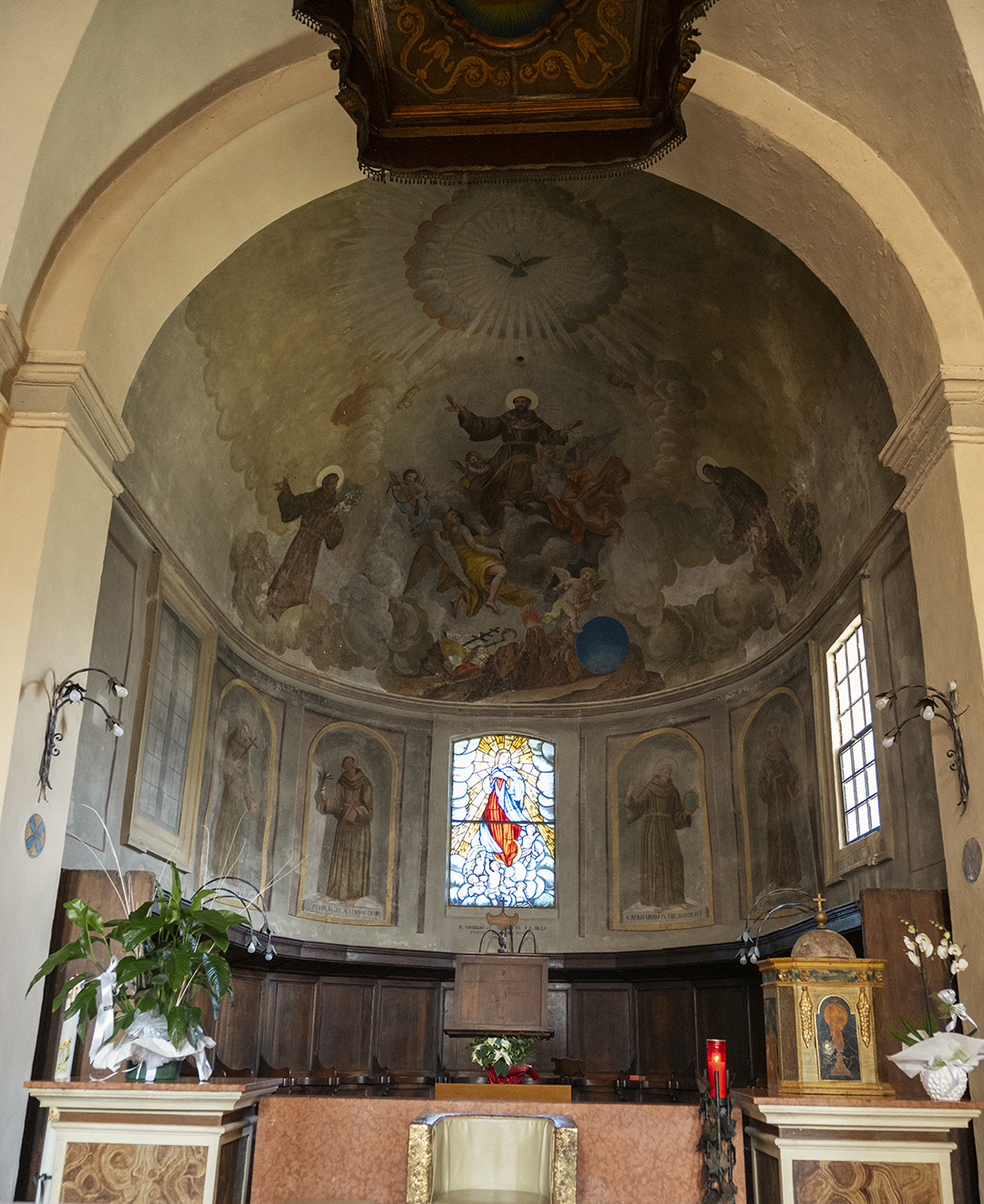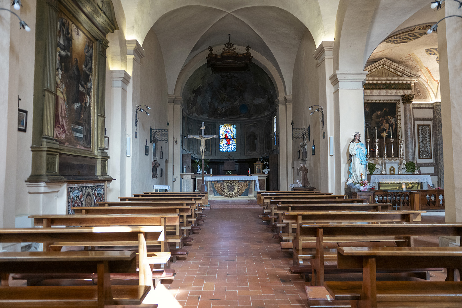 Tra le opere più interessanti presenti nella chiesa, l’affresco della Madonna in trono col Gesù lattante che stringe un cartiglio con la scritta Ego sum lux mundi; in alto due angeli, alla sua sinistra San Francesco.